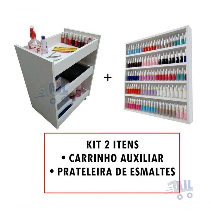 Porta Esmalte Carrinho Auxiliar + Prateleira Expositora - Ajb