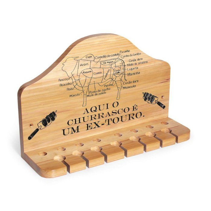 Porta Espeto em Madeira Maciça Entalhado Preto - Fabricação Própria