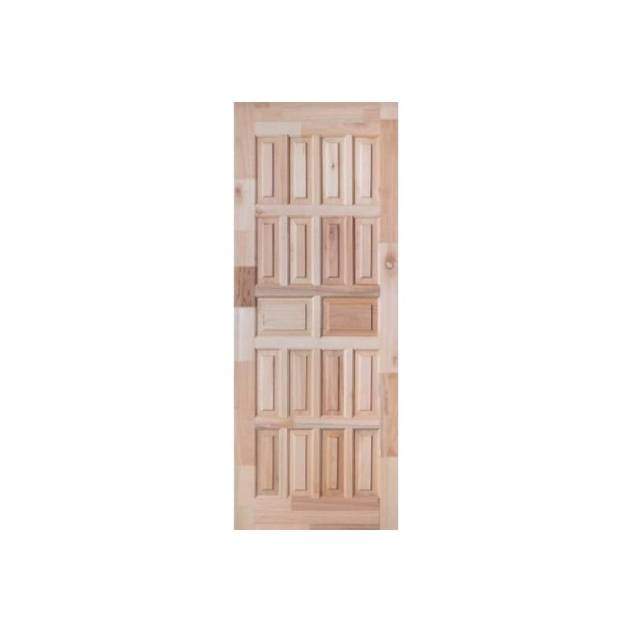 Porta maciça com madeiras fingadas, sendo grande parte em eucalipto. Não acompanha ferragens, sendo somente a folha de porta de madeira. A madeira utilizada passa por um processo de secagem junto ao tempo de no mínimo 12 meses, sendo rigorosamente selecionada antes de entrar no processo produtivo. Todos os produtos Sizenando possuem garantia de 1 ano contra defeito de fabricação.