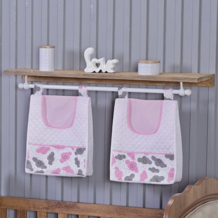 Porta Fralda Organizador Quarto de Bebê Menino Menina 2 Peças Varão:nuvem Rosa