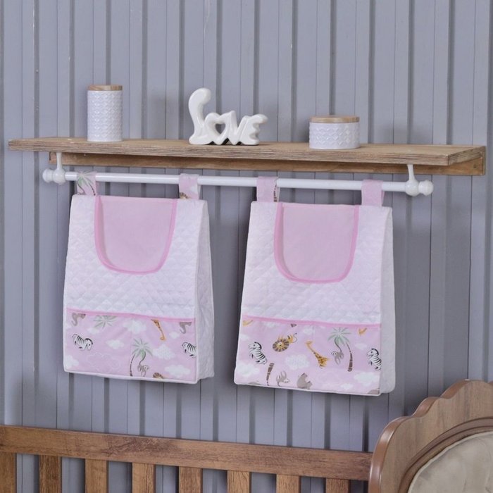 Porta Fralda Organizador Quarto de Bebê Menino Menina 2 Peças Varão:safari Rosa