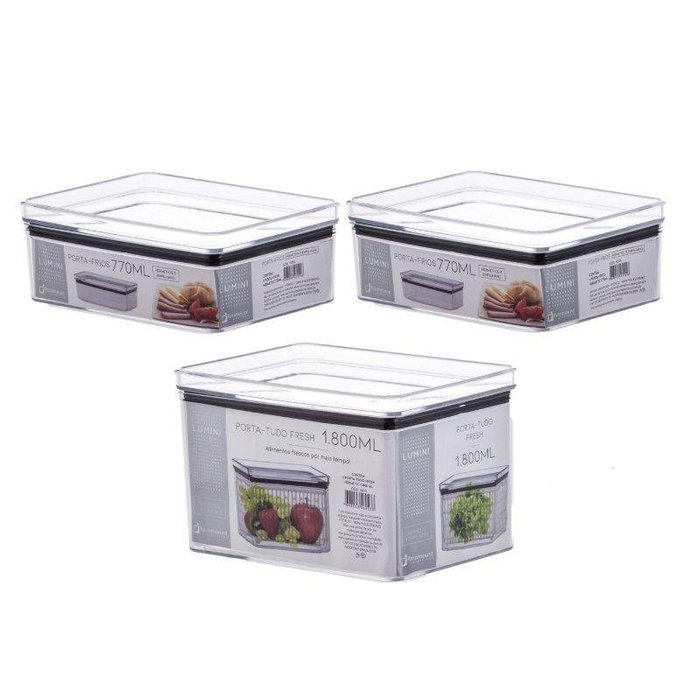 Porta Frios e Fresh Hermetico 3pç-770ml,1800ml-cod:kit0070
