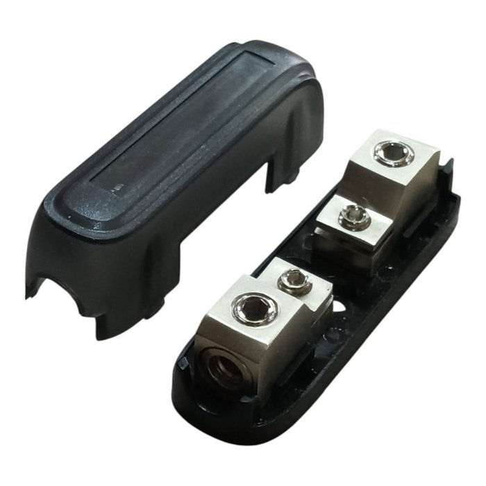 Suas partes metálicas banhadas a níquel proporcionam alta durabilidade e resistência à corrosão, garantindo uma instalação duradoura. Possui capacidade para 1 fusível lâmina max, ideal para sistemas de média e alta potência, e entradas para cabos até 21 mm², acomanha Anel Redutor de bitola para 8 mm². Imagens meramente ilustrativas. As informações contidas neste anúncio podem ser alteradas ou atualizadas sem aviso prévio. Função / Tipo Porta Fusível