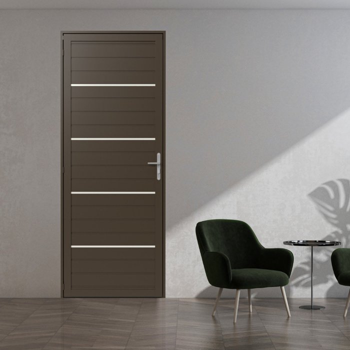 Porta Giro Social Lambril com Frisos Alumínio Bronze - Direita Marrom