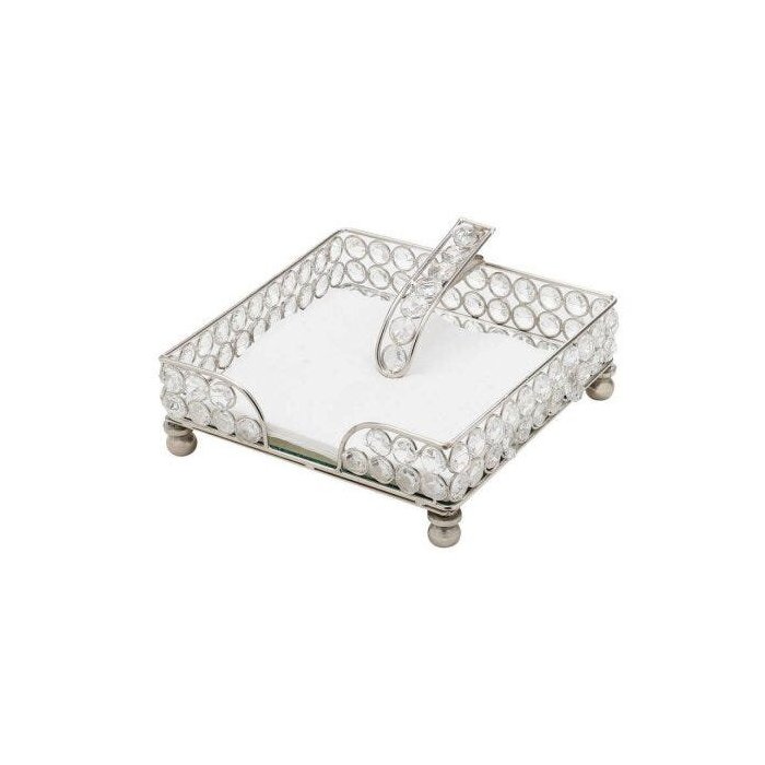 Porta Guardanapo de Ferro e Cristais Prateado 19cmx19cmx6cm Rojemac