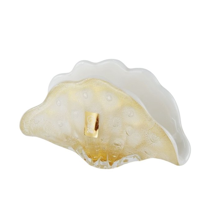 Porta Guardanapo de Murano São Marcos - Branco Com Ouro 24K