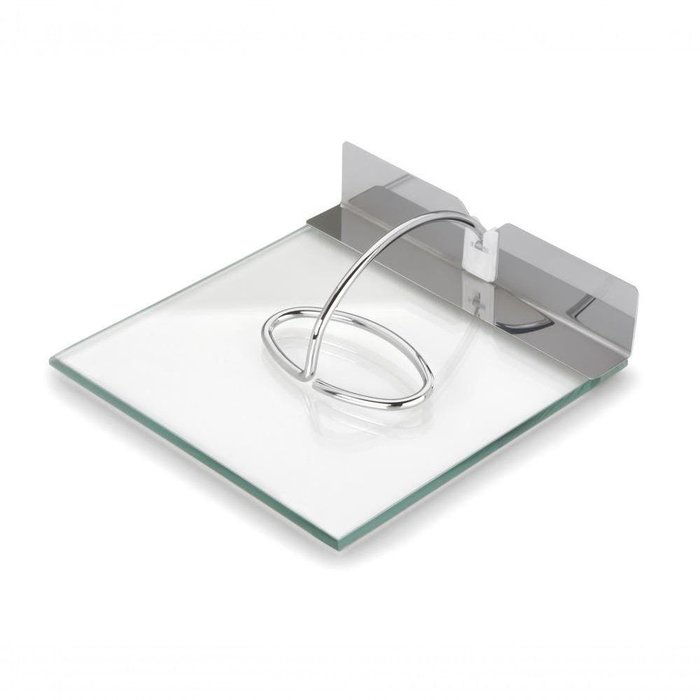 1 Porta-guardanapos com fundo em vidro 18x18x4,5 cm e suporte em aço e aramado cromado
