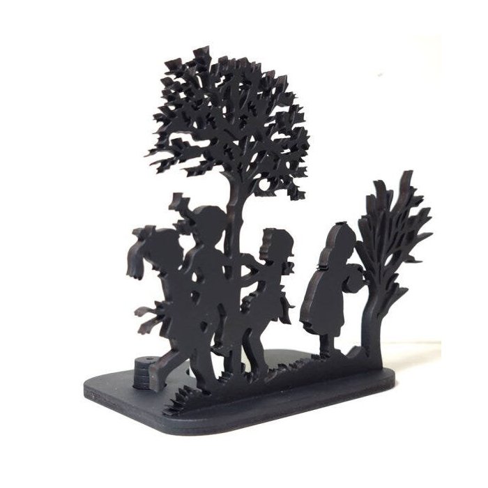 Porta incenso lindo e delicado com o cenário de três crianças se divertindo ao redor de uma bela árvore cheia de folhas e, uma quarta criança regando uma árvore seca para que um dia se torne bela e cheia de folhas.