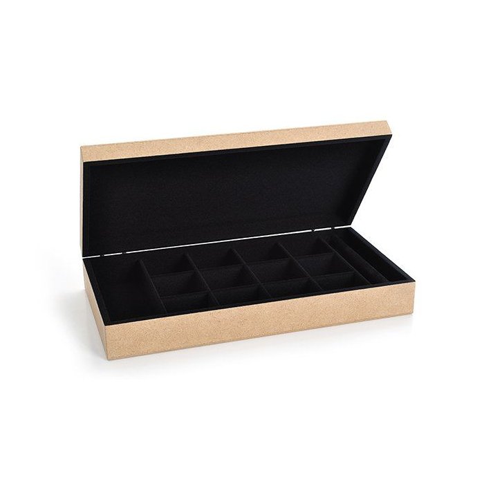Porta Joia e Biju com 13 Divisões e Aneleira, é confeccionado em MDF de ótima qualidade, com interior revestido através da técnica de flocagem em preto, trazendo proteção, organização e requinte a suas Joias e Bijus. Caixa com dobradiça de pino quase invisível.