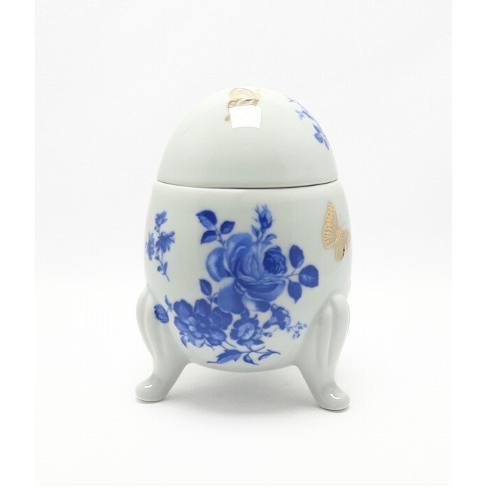 Porta Joia Ovo em Porcelana - Flores Azul e Borboletas - Grande Cerâmica Maria Sofia