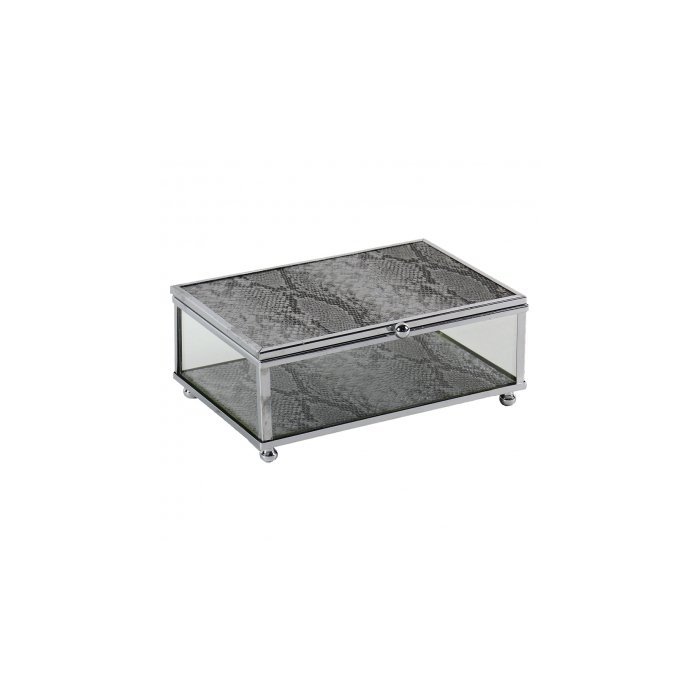 PORTA JÓIAS DE VIDRO COM DESENHO DE COBRA E METAL PRATA 15CM BTC Decor