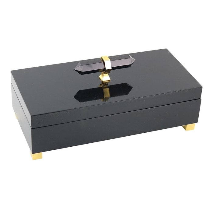 Porta Jóias Retangular com Alça de Pedra Preto Preto e Dourado