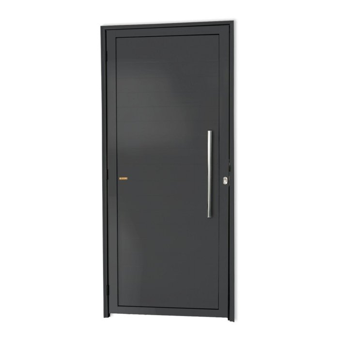 Portas de Abrir de Alumínio Linha Super 25 Pintura Eletrostática Cinza 1 Folha de Abrir para o Lado Direito Lambris Horizontais Puxador Londres 60 Cm Polido Altura 210 Cm Largura 100 Cm Requadro 4,6 Cm Garantia de 5 anos contra defeitos de fabricação