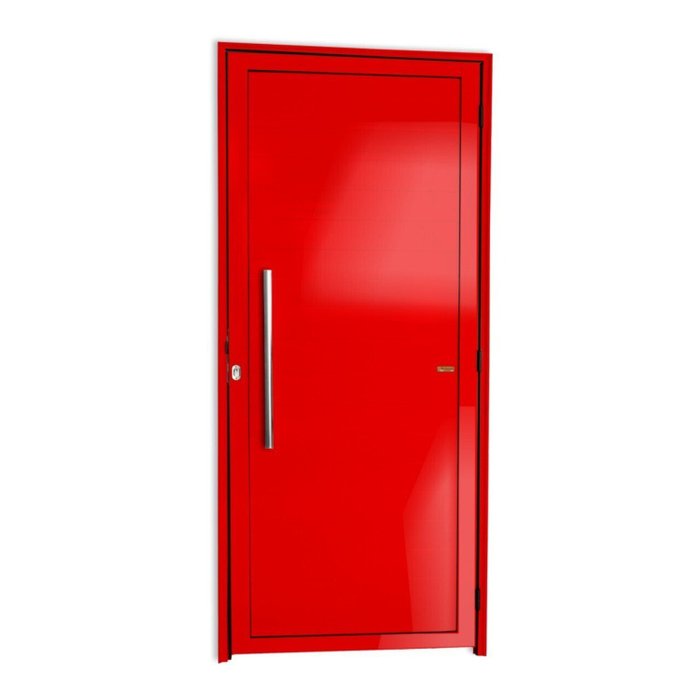 Portas de Abrir de Alumínio Linha Super 25 Pintura Eletrostática Vermelho 1 Folha de Abrir para o Lado Esquerdo Lambris Horizontais Puxador Londres 60 Cm Polido Altura 210 Cm Largura 80 Cm Requadro 4,6 Cm Garantia de 5 anos contra defeitos de fabricação