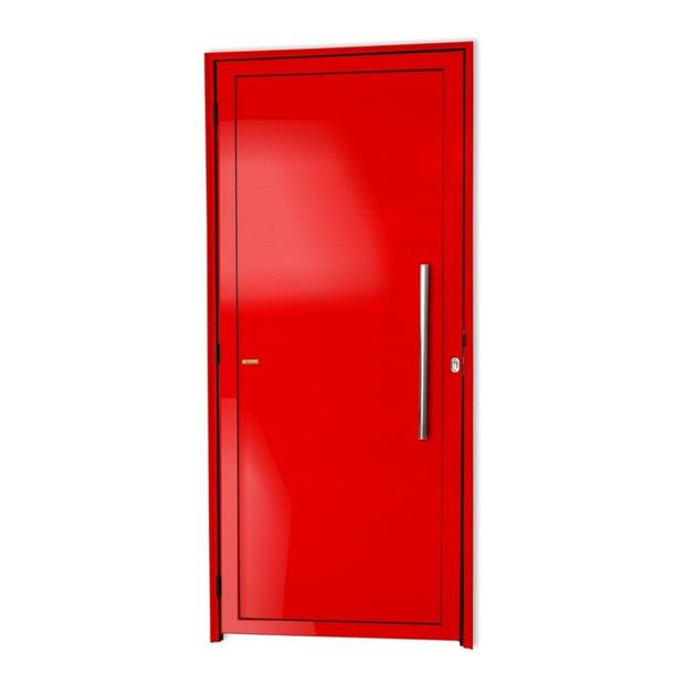Portas de Abrir de Alumínio Linha Super 25 Pintura Eletrostática Vermelho 1 Folha de Abrir para o Lado Direito Lambris Horizontais Puxador Londres 60 Cm Polido Altura 210 Cm Largura 80 Cm Requadro 4,6 Cm Garantia de 5 anos contra defeitos de fabricação