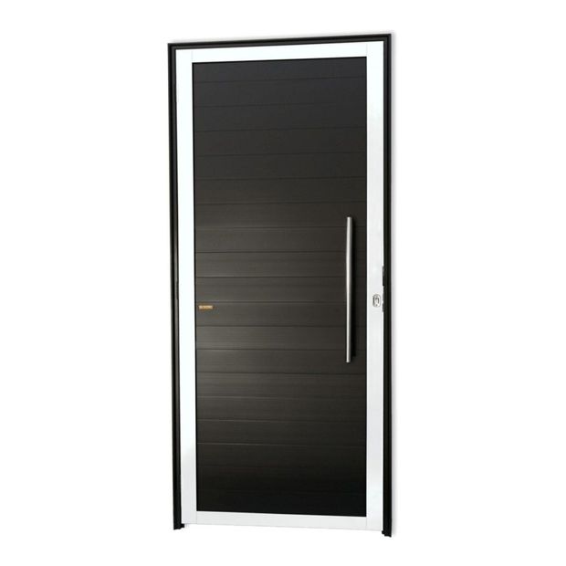 Portas de Abrir de Alumínio Linha Super 25 Pintura Eletrostática Mix Preta 1 Folha de Abrir para o Lado Direito Lambris Horizontais Puxador Londres 60 Cm Polido Altura 210 Cm Largura 80 Cm Requadro 4,6 Cm Garantia de 5 anos contra defeitos de fabricação