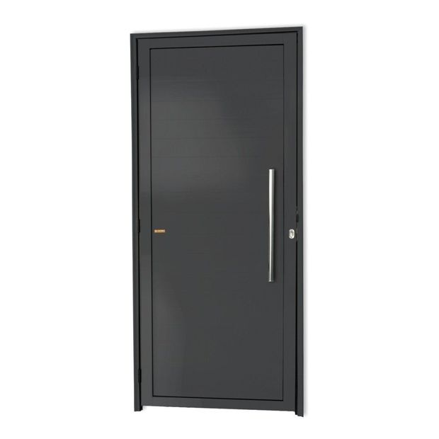 Portas de Abrir de Alumínio Linha Super 25 Pintura Eletrostática Cinza 1 Folha de Abrir para o Lado Direito Lambris Horizontais Puxador Londres 60 Cm Polido Altura 210 Cm Largura 80 Cm Requadro 4,6 Cm Garantia de 5 anos contra defeitos de fabricação