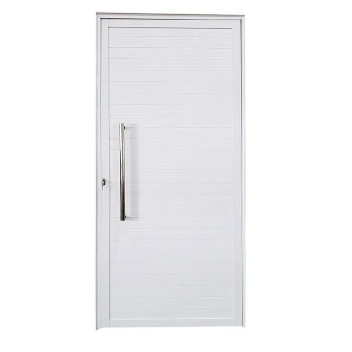 Porta Lambril de Alumínio Branco Com Puxador Linha Veneza Fabricada em alumínio e revestida com pintura eletrostática branca, a porta de Alumínio Lambril com Puxador, vem sendo muito usada por ser muito resistente e por ter uma vida útil duradoura além de ter uma aparência futurista. Nas medidas de 2,10 m de altura e com larguras de 80 e 90 cm são muito procuradas para construções em prédios, comércios e residências. O produto acompanha batente, fechadura rolom com par de chaves e puxador.