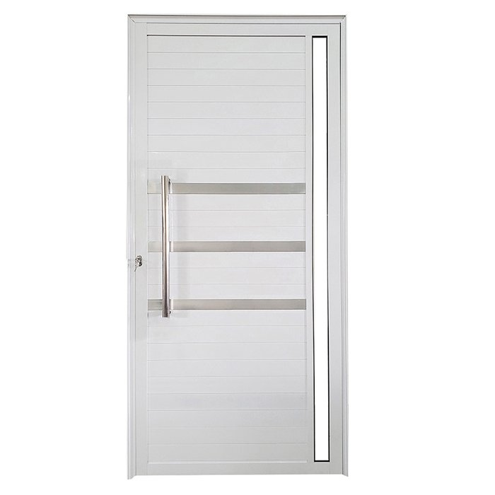 Porta Lambril de Alumínio Branco com Puxador, Friso e Vidro Linha Veneza:Direita/ 210 x 80