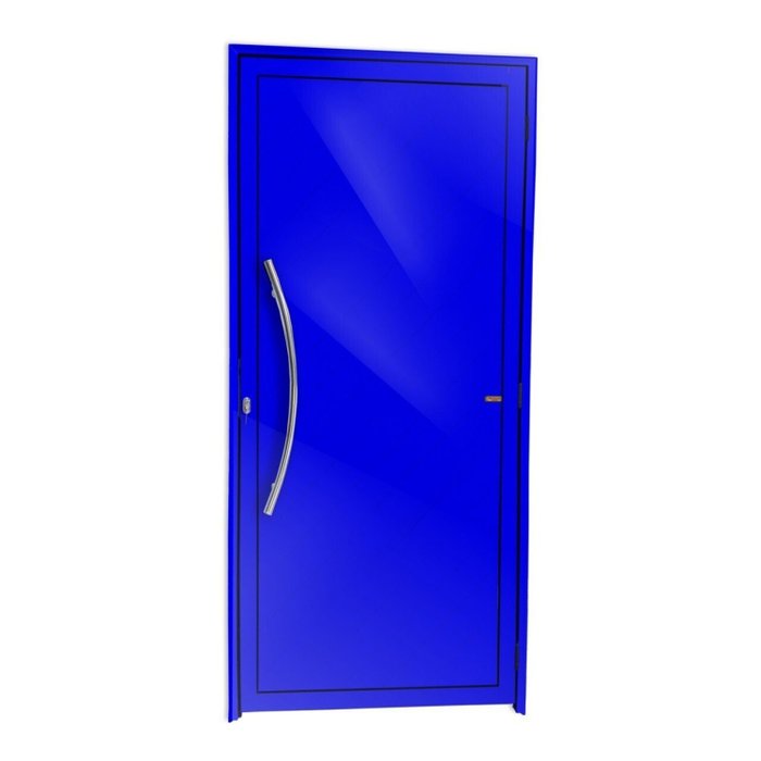 Portas de Abrir de Alumínio Linha Super 25 Pintura Eletrostática Azul 1 Folha de Abrir para o Lado Esquerdo Lambris Diagonais Puxador Athenas 80 cm Polido Altura 210 cm Largura 90 cm Requadro 4,6 cm Garantia de 5 anos contra defeitos de fabricação