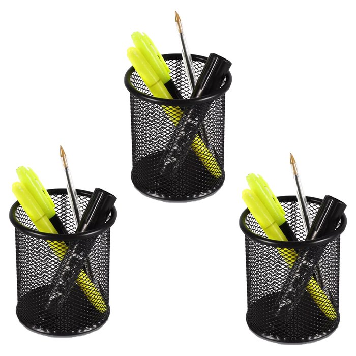 Porta Lapis Aramado Kit 3 Unidades Organizador Lapis Caneta Escrivaninha Home Office Mesa de Trabalh Preto