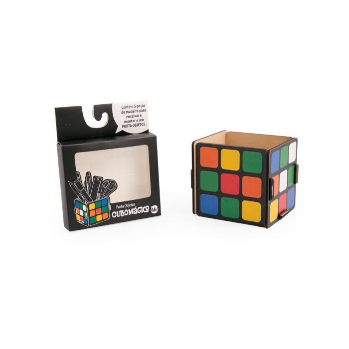 Porta Lapis e Objetos Cubo Magico em Madeira