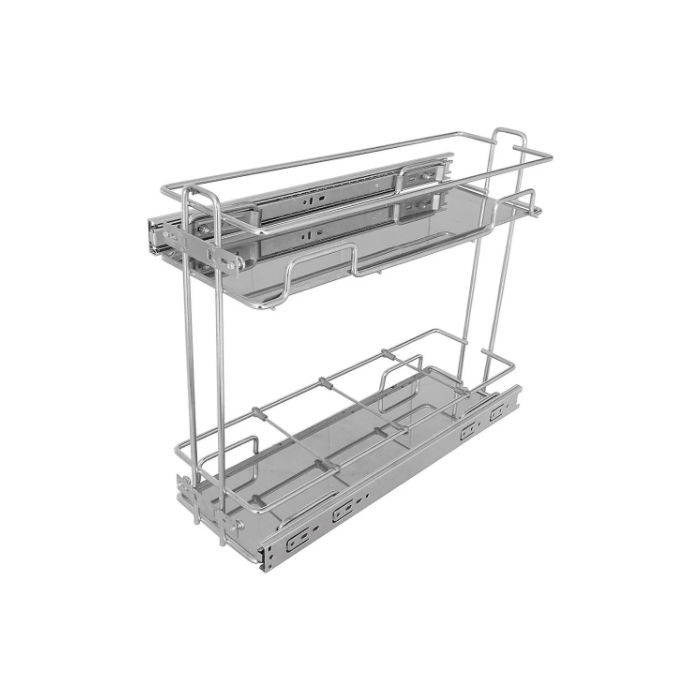 Produto confeccionado em aço carbono ou inox, com frente e fundo e estruturas de Ø6mm e varetas de sustentação das bandejas de Ø3mm. Acompanha trilhos telescópicos, que vão desmontados da peça e insumos para a fixação dos mesmos.