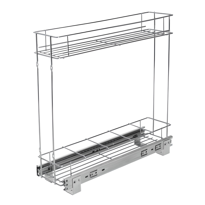 Acompanha trilhos telescópicos zincados, que vão desmontados da peça e insumos para a fixação dos mesmos. Perfeito para nichos em cozinhas com instalação lateral e kit de fixação na base..