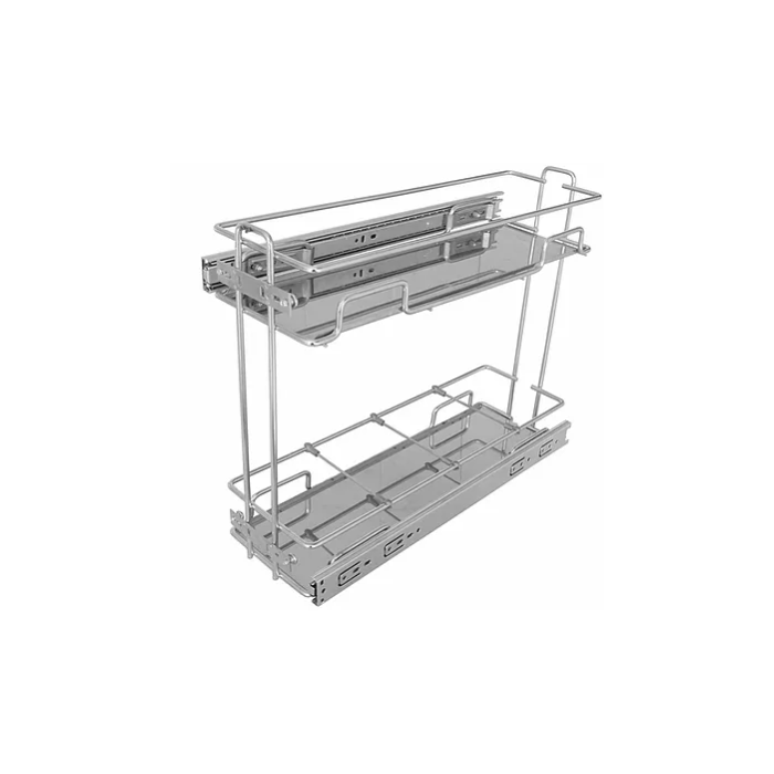 Produto confeccionado em inox, com frente e fundo e estruturas de Ø6mm e varetas de sustentação das bandejas de Ø3mm. Acompanha trilhos telescópicos, que vão desmontados da peça e insumos para a fixação dos mesmos. Perfeito para nichos em cozinhas com instalação lateral. Acompanha 3 conjuntos de divisores removíveis para amparar melhor os mantimentos, porta temperos e latas. Acompanha 2 bandejas em aço inox 430.