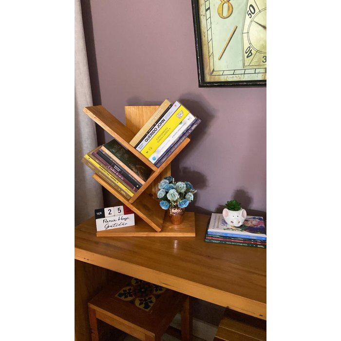 Suporte de livros feito em madeira de demolição mista com acabamento em verniz, peça mais bonita e resistente encontrada no mercado. Ideal para decorações de salas, quartos e escritórios, combina com todos os estilos de decoração, para os amantes de leitura e uma peça que trás um toque especial a sua coleção de livros.