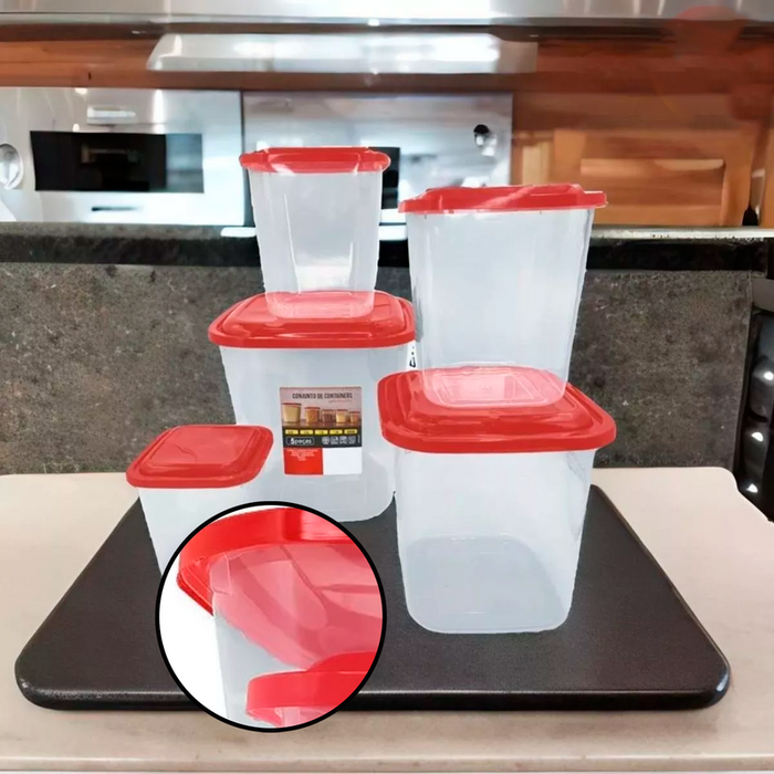 Contém: 01 Kit Porta Mantimentos Com 5 Peças - Vermelho