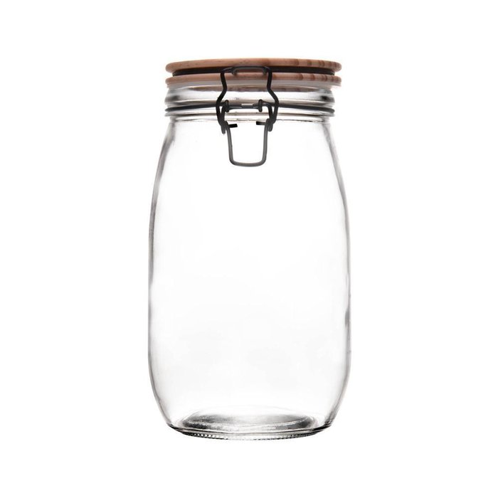 Porta Mantimento de Vidro com Tampa Hermética de Bambu 1,6l