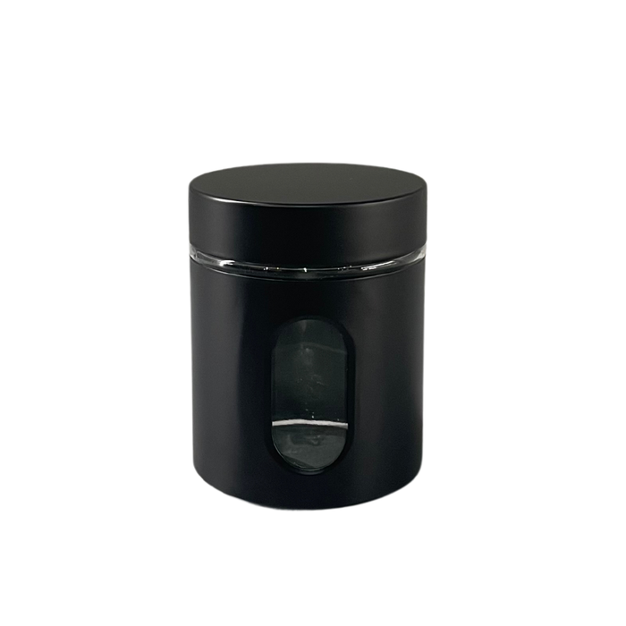 Porta Mantimento de Vidro e Metal Preto com Visor 700ml