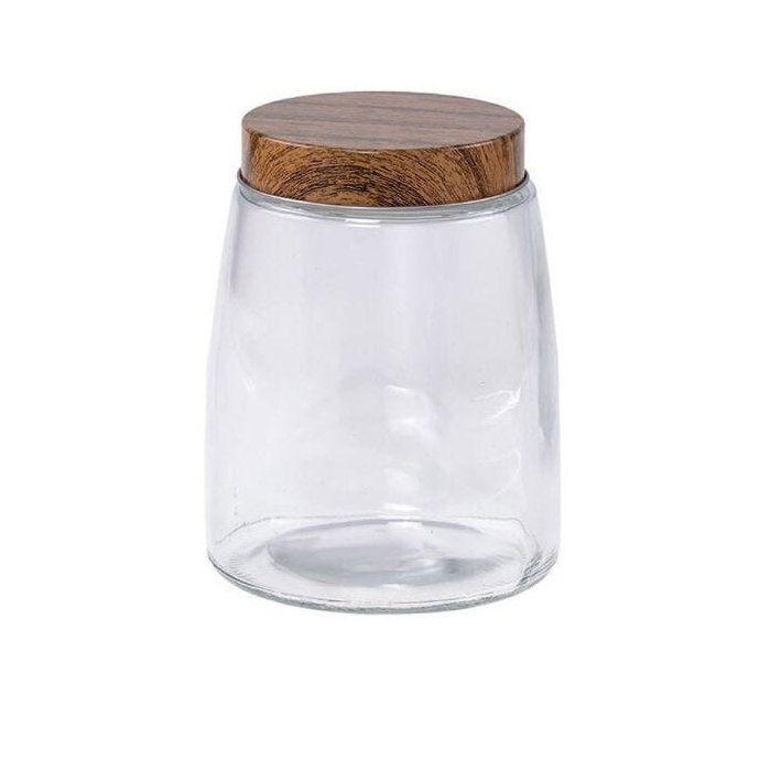 Porta Mantimentos / Pote de Vidro com Tampa Metálica Estilo Madeira 12,5 X 16,5 cm madeira