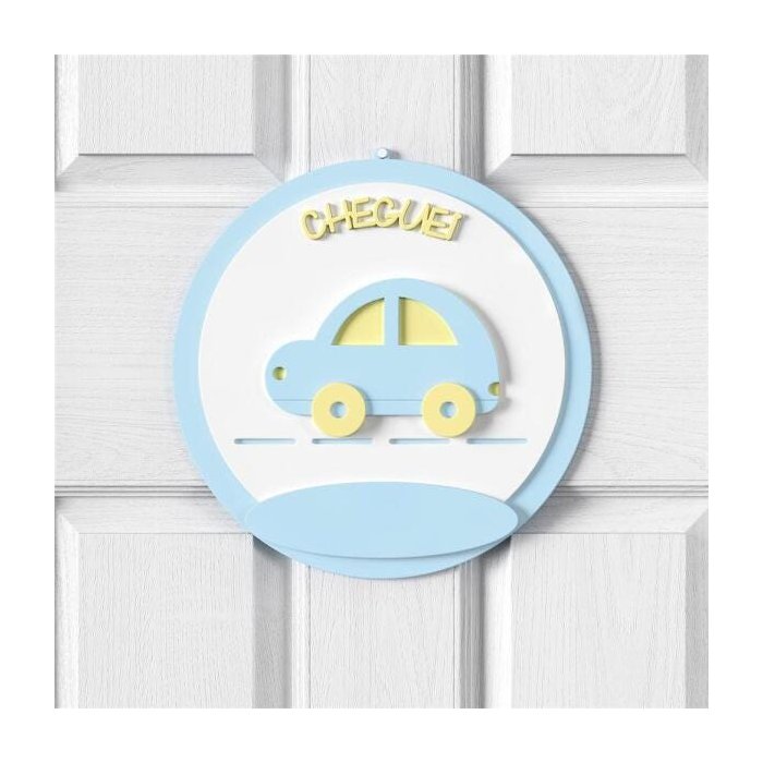 Porta Maternidade Nome Bebê Carrinhos Amarelo Grão de Gente