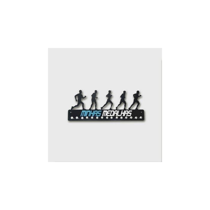 Fabricado em MDF preto, 15 ganchos, largura 36cm, altura 14cm capacidade até 45 medalhas.Acompanham o produto: parafusos e buchas.Não acompanha o produto: Fita Duplaface