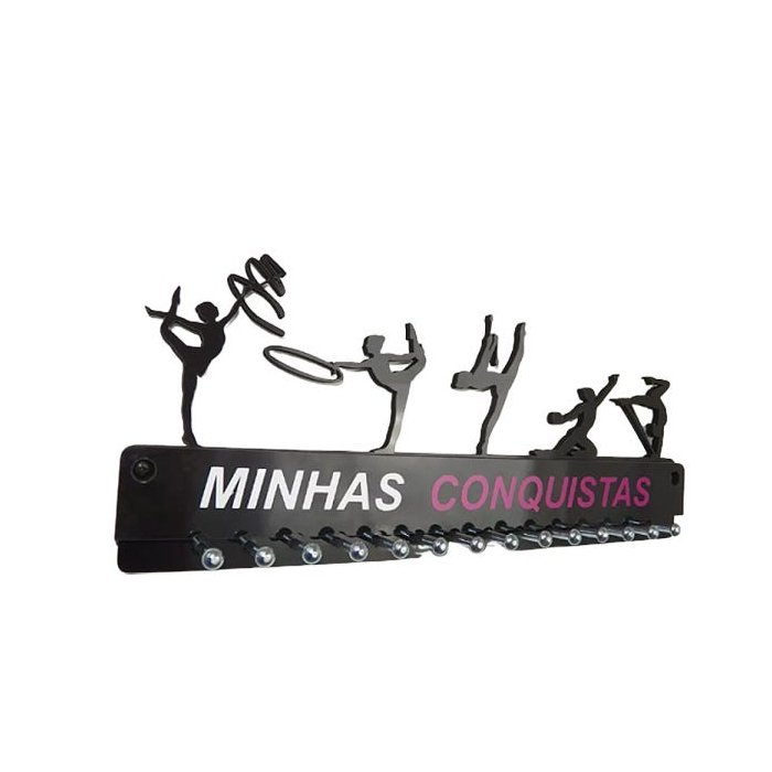 Porta Medalhas Ginástica Ritmica Fem Adesivo Minhas Conquistas branco e pink para até 50 medalhas Preto