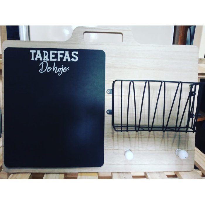 Porta Objeto Lousa Tarefas Gancho Madeira e Metal 39,5 x 29,5cm CÓD701