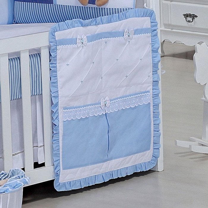 Ideal para guardar e organizar fraldas, mamadeiras, pomadas, lenços umedecidos entre outros itens o Porta Objetos Bony Azul é indispensável no enxoval do bebê. Ele é super prático e otimiza espaço já que pode ser suspenso junto a grade do berço.
