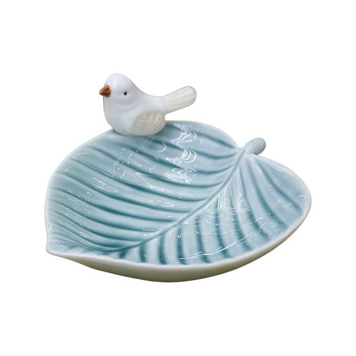 Porta Objetos Folha Azul em Cerâmica é um encanto só, em forma de folha e com 1 passarinho na borda deixa a peça ainda mais sofisticada, ela fará sucesso em qualquer cantinho da casa. Porta Objetos é um item funcional, além de decorativo e vai deixar o ambiente mais charmoso. Em formato de folha, na cor azul e produzido em cerâmica de ótima qualidade e acabamento. Invista em itens que são tendência no ramo de decoração!