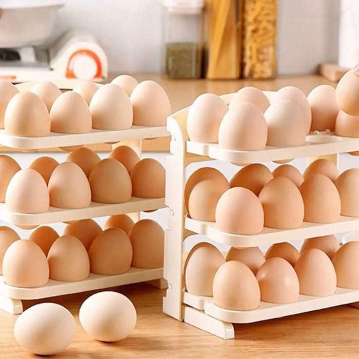 Porta Ovos Suporte 24 Ovos Organizador 3 Andares Geladeira Guarda Ovo Mesa Bancada Armario Cozinha Resistente Dobravel Mantenha seus ovos organizados e facilmente acessíveis, economizando espaço na sua cozinha ou geladeira. Produzido em polipropileno resistente, garante a proteção dos ovos contra quebras e danos. Seu design dobrável permite que você guarde o suporte de forma compacta quando não estiver em uso. Perfeito para uso tanto na geladeira quanto na bancada da cozinha, adaptando as suas necessidades diárias. Características: Capacidade: 24 ovos