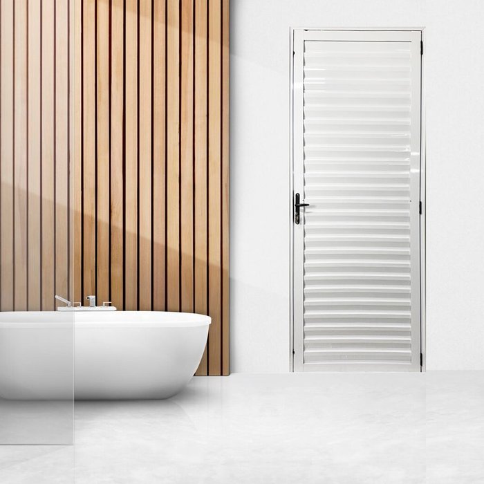 Porta Palheta de Alumínio 210 X 70cm Linha 25 Lado Esquerdo Esquadrias Bergamo Branco