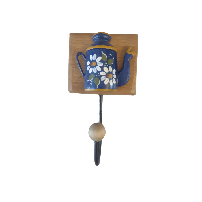 Porta Pano De Prato Artesanal De Parede Bule Madeira E Ferro:Azul