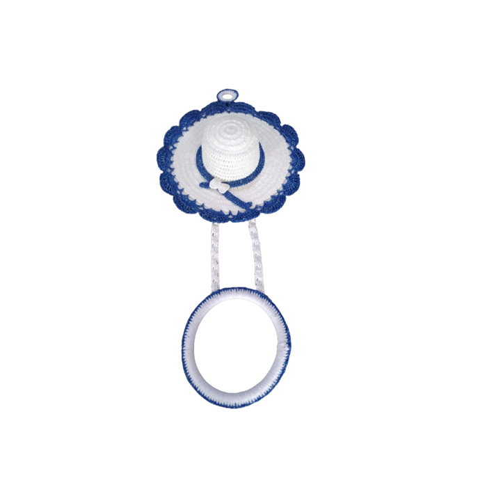 Porta Pano de Prato de Crochê Forma de Chapéu - Branco e Azul