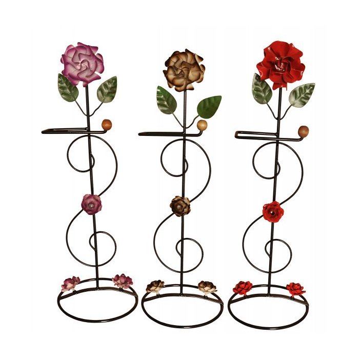 Porta papel higiênico flores 3 un Material: Ferro (antiferrugem) Cor: Roxo, marrom e vermelho Altura: 60.00 cm Largura: 15.00 cm Peso: 500 g