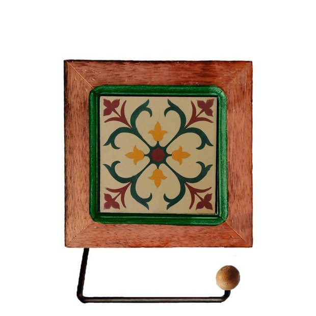 Porta Papel Higiênico Madeira com Ladrilho Artesanal Ladrilho D1m