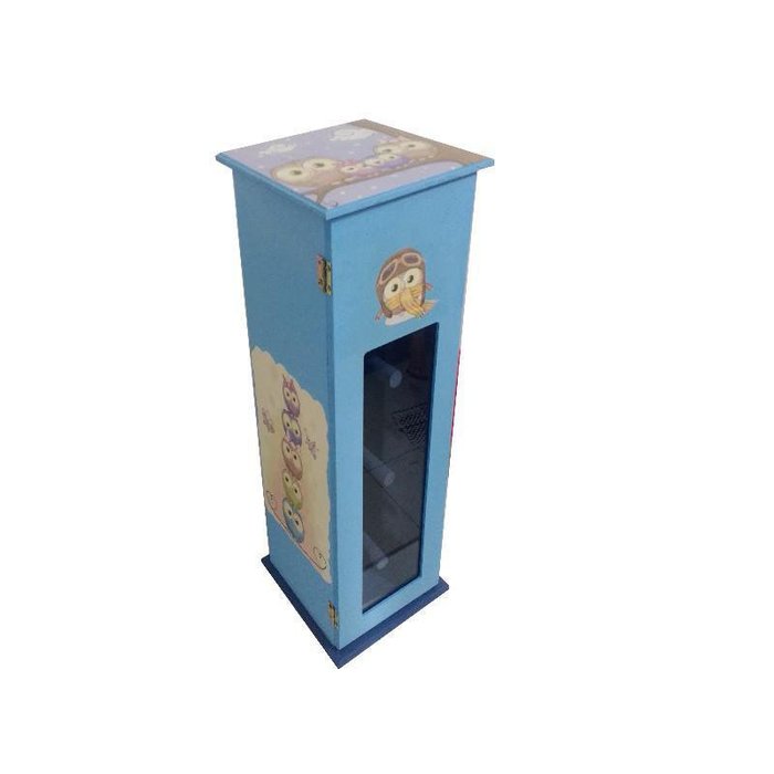 Porta Papel Higiênico Mdf Com Gaveta E Porta Corujinhas Azul