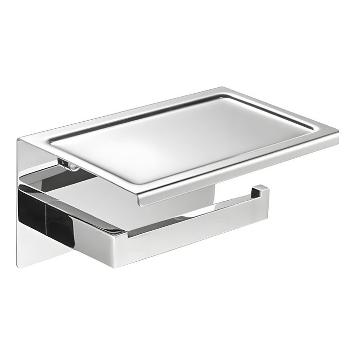 Porta Papel Higiênico Suporte Celular Prata Cromada Moderno Prata
