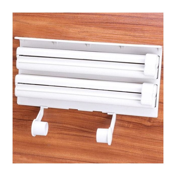 Ele contém suportes para filmes plásticos, rolos de papel e folhas de alumínio e os disponibiliza instantaneamente, sem a necessidade de encontrá-los pela casa. Possui um corpo de plástico ABS compacto e pode ser montado na parede com parafusos. Possui cortadores com rodas de roletes suaves em cada compartimento cortam folhas de alumínio e filmes plásticos sem qualquer problema.
