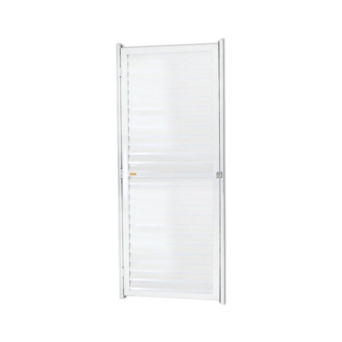Portas de Abrir Banheiro Coletivo de Alumínio Linha L.25 Pintura Eletrostática Branca 1 Folha de Abrir para o Lado Direito Fechamento tipo Veneziana Fechadura e Dobradiças na Cor do Produto Altura 180 Cm Largura 70 Cm Requadro 4,6 Cm Garantia de 5 anos contra defeitos de fabricação
